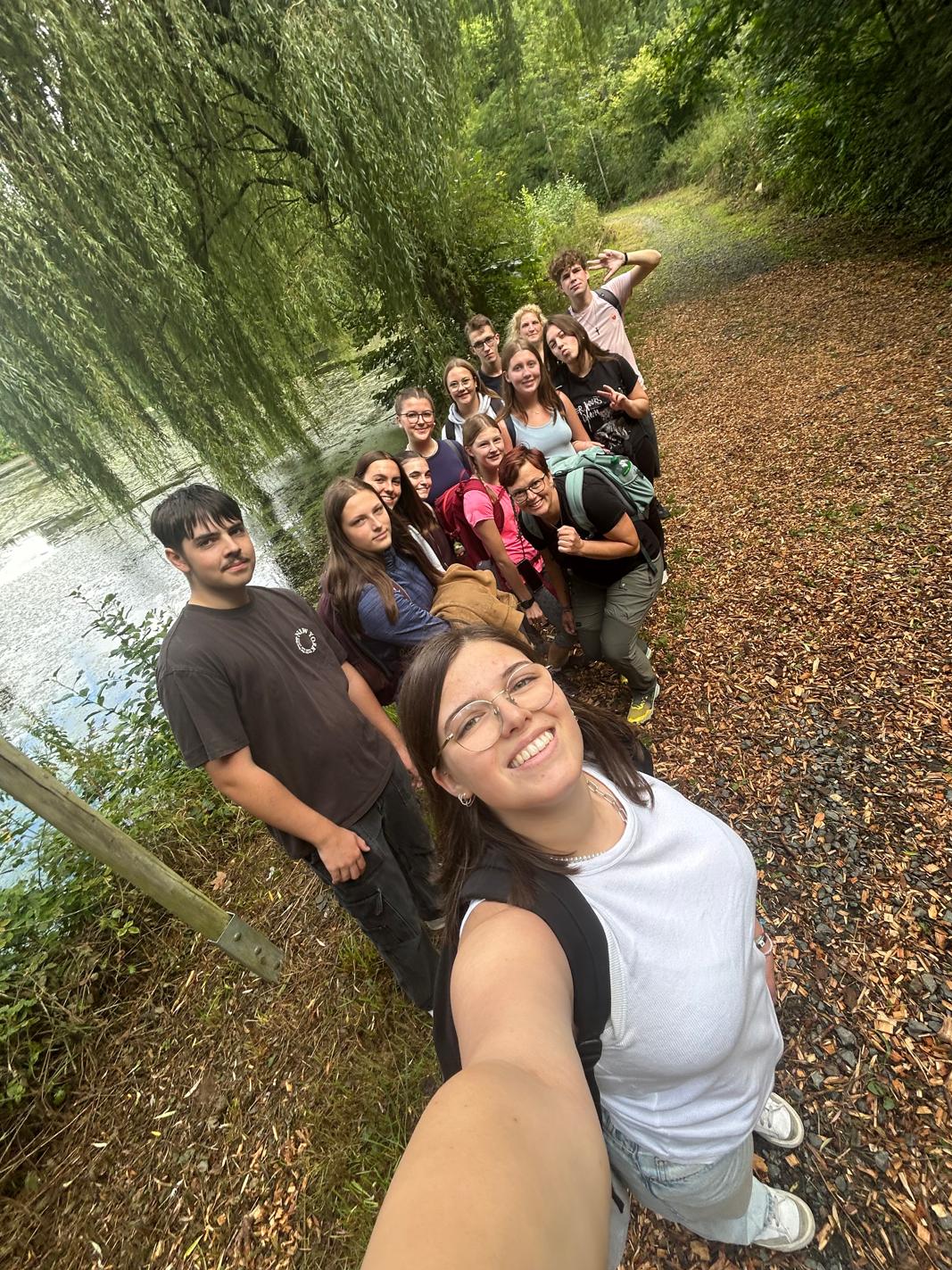 Los ging es an der St.Anna Kirche, dort gab es die ersten Rätsel, die uns zum Kurpark schickten. Beim Zahlung-Buchstabenrätsel war die Lösung das Forsthaus. Weiter ging es für ein Gruppenselfie zum Angelweiher. Von dort mussten wir zum Rewe, dann hatten wir es schon geschafft und wurden mit dem Codewort Hildegard in den HiHo gefahren. Dort gab es ein buntes Programm für uns alle. Zum Abschluss kamen auch die Teilnehmer des “Tag der Regionen" dazu und gemeinsam mit Bischof Bätzing feierten wir einen Gottesdienst auf der Wiese.