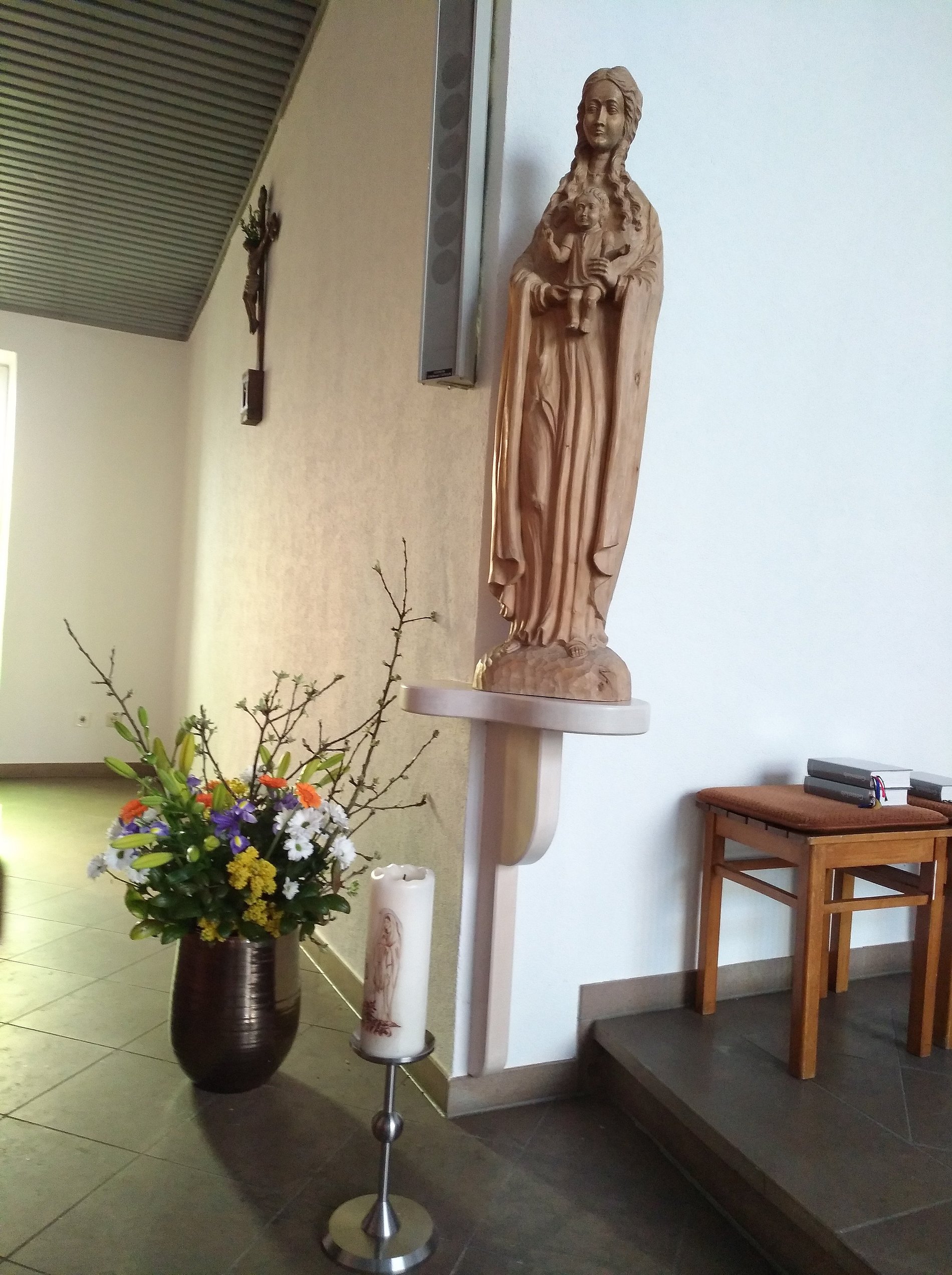Als es aber um einen Kirchenneubau ging, entschied man sich für den Ortsteil Hochelheim, in dem es eine größere Siedlung von Heimatvertriebenen gab. Im April 1957 konnte mit dem Bau begonnen werden, im Dezember war er bereits vollendet. Die kirchlichen Strukturen wurden gleich mitangepasst: Die Seelsorgestelle wurde aufgehoben und die Pfarrvikarie Hüttenberg-Hochelheim gegründet.