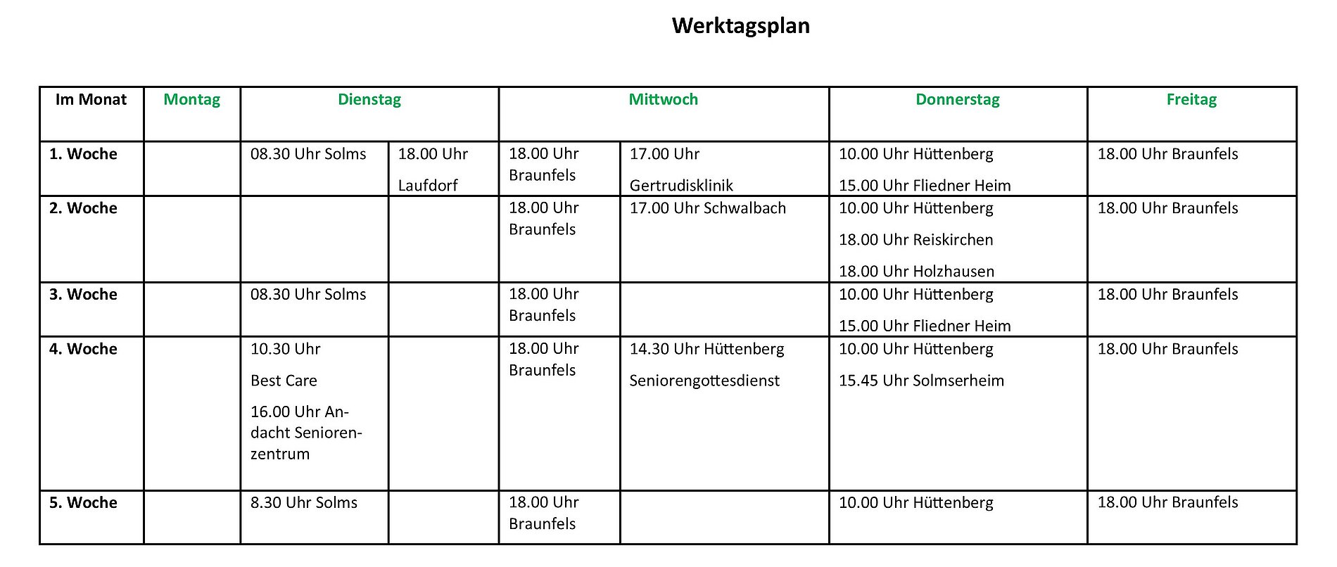 - Am zweiten Mittwoch des Monats, 17:15 Uhr, Braunfels, Josef-Lücker Saal