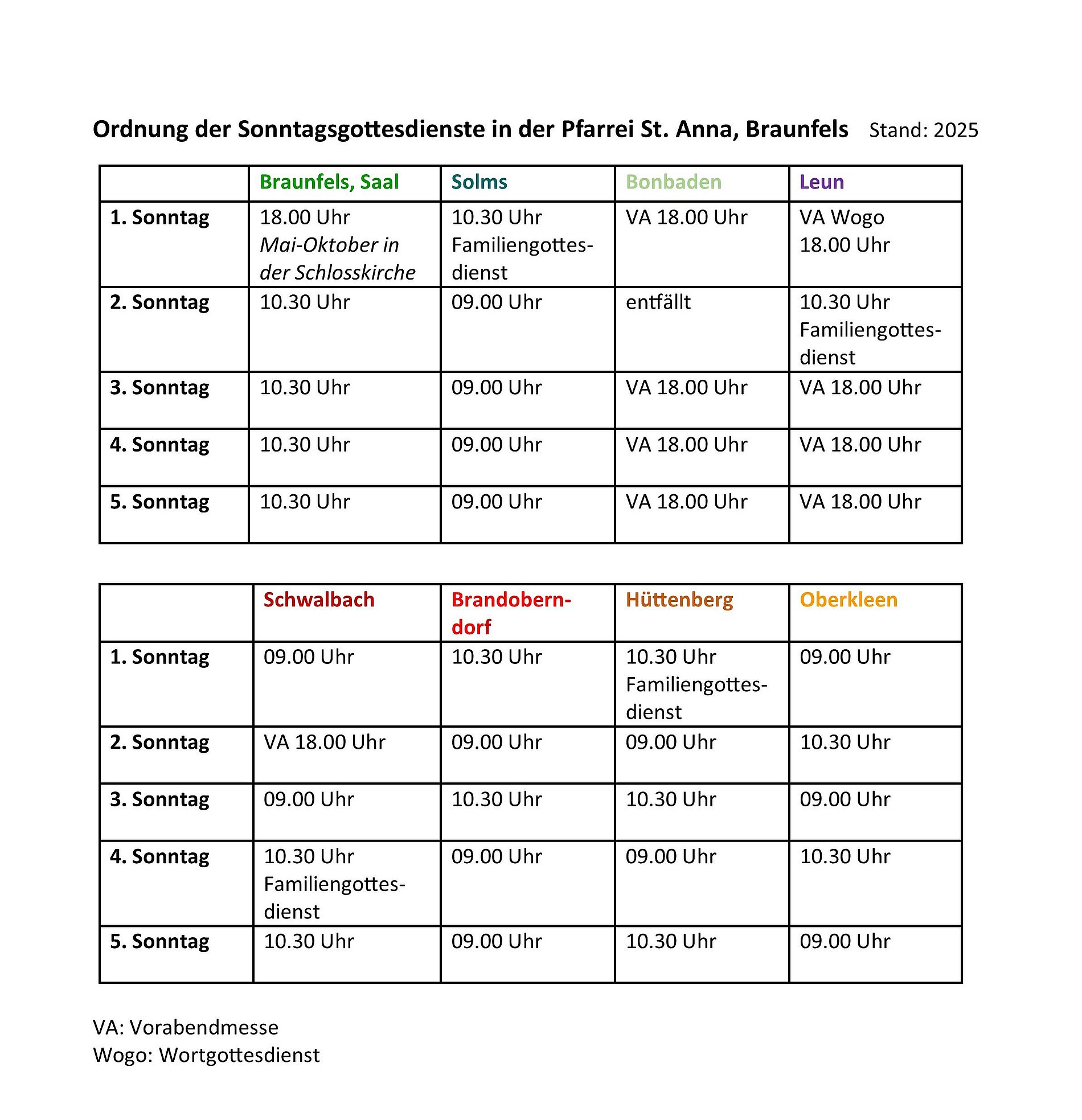 Übersicht Gottesdienste